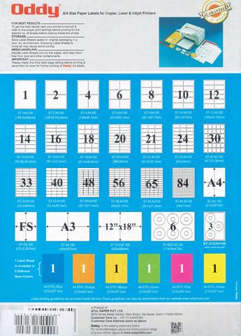 Oddy Label Sheet A4 Size 100 Sheets (12 Labels Per Sheet)